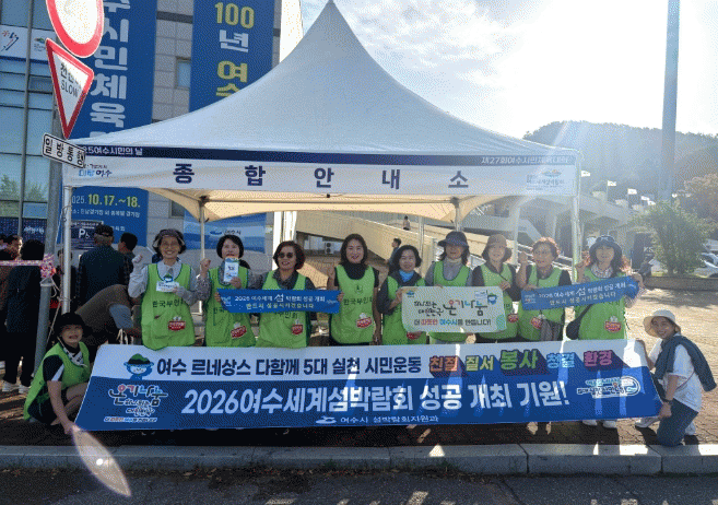 [ÅåÅå´º½º]¿©¼ö½Ã´Â Áö³ 17ÀÏ Áø³²Ã¼À°°ü¿¡¼ ¿¸° ¡®2025 ¿©¼ö½Ã¹ÎÀÇ ³¯ ±â³äÇà»ç¡¯ ÇöÀå¿¡¼ Çѱ¹ºÎÀÎȸ ¿©¼ö½ÃÁöȸ(´ëÇ¥ ±èÀϽÉ)¿Í ÇÔ²² ½Ã¹Î°ú ¼±¼öµéÀ» ´ë»óÀ¸·Î À½¼ö ºÀ»ç¿Í 2026¿©¼ö¼¼°è¼¶¹Ú¶÷ȸ È«º¸È°µ¿À» Àü°³Çß´Ù.