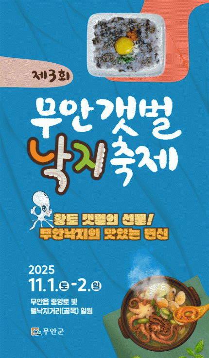 [ÅåÅå´º½º]Àü³² ¹«¾È±ºÀº 11¿ù 1, 2ÀÏ ÀÌÆ²°£ 'ȲÅä°¹¹úÀÇ ¼±¹°! ¹«¾È³«ÁöÀÇ ¸ÀÀÖ´Â º¯½Å' À̶ó´Â ÁÖÁ¦·Î ¹«¾ÈÀ¾ »¹³«Áö °Å¸® ¹× Áß¾Ó·Î ÀÏ¿ø¿¡¼ Á¦3ȸ ¹«¾È°¹¹ú³«ÁöÃàÁ¦¸¦ °³ÃÖÇÑ´Ù.