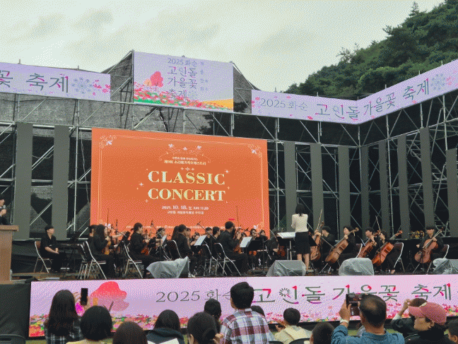 À̹ø ¿ÀÄɽºÆ®¶ó À½¾Çȸ´Â '2025 È­¼ø°íÀε¹°¡À»²ÉÃàÁ¦¸¦ ¸Â¾Æ ÃàÁ¦Àå ÁÖ¹«´ë¿¡¼­ ÆîÃÄÁ® ÃàÁ¦ÀåÀ» ãÀº °ü±¤°´°ú Áֹε鿡°Ô ¾Æ¸§´Ù¿î ¼±À²À» ¼±»çÇß´Ù.