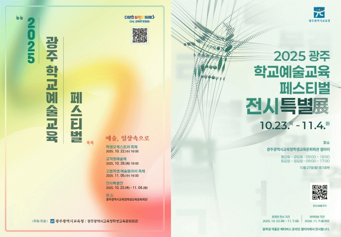 [ÅåÅå´º½º]±¤Áֽñ³À°Ã»Àº ¿À´Â 22ÀϺÎÅÍ 11¿ù 5ÀϱîÁö Çлý±³À°¹®Èȸ°ü¿¡¼ ¡®2025 ±¤ÁÖ Çб³¿¹¼ú±³À° Æä½ºÆ¼¹ú¡¯À» °³ÃÖÇÑ´Ù.