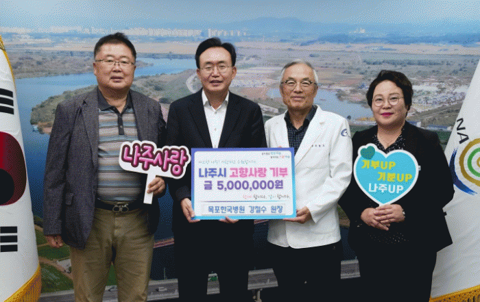 [ÅåÅå´º½º]Àü¶ó³²µµ ³ªÁֽô 22ÀÏ ¸ñÆ÷Çѱ¹º´¿ø °Ã¶¼ö ¿øÀå(¿À¸¥ÂÊ µÎ ¹øÂ°)ÀÌ Áö¿ª»çȸ ¹ßÀüÀ» À§ÇØ °íÇâ»ç¶û±âºÎ±Ý 500¸¸ ¿øÀ» ±âŹÇß´Ù°í ¹àÇû´Ù.