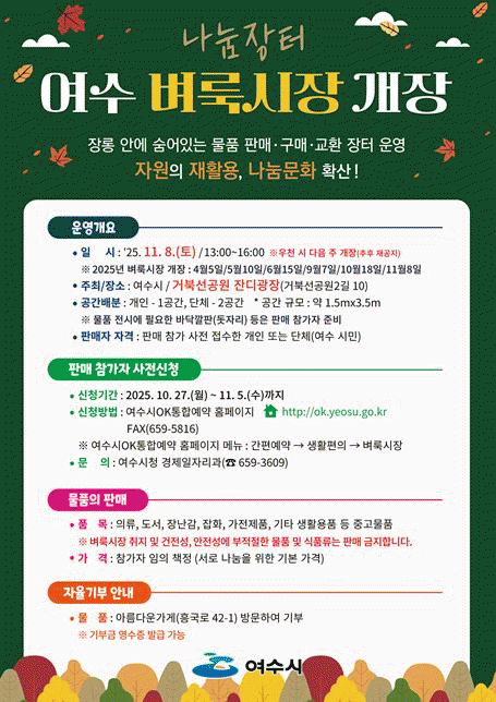 [ÅåÅå´º½º]¿©¼ö½Ã´Â ¿À´Â 11¿ù 8ÀÏ ¿ÀÈÄ 1½ÃºÎÅÍ 4½Ã±îÁö °ÅºÏ¼±°ø¿ø Àܵð±¤Àå¿¡¼ ¿ÃÇØ ¸¶Áö¸· ¡®Á¦6ȸ ¿©¼öº·è½ÃÀ塯À» °³ÃÖÇÑ´Ù.