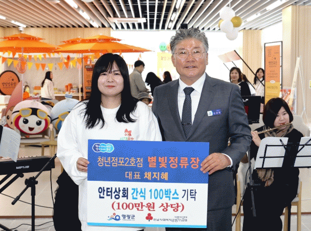 [ÅåÅå´º½º] ¿µ±¤±ºÀº Áö³ 27ÀÏ ¿µ±¤±º ±º¼¸é¿¡ À§Ä¡ÇÑ Ã»³âÁ¡Æ÷ 2È£Á¡ º°ºûÁ¤·ùÀå(´ëÇ¥ äÁöÇý)¿¡¼ Áö¿ª ¾î¸£½ÅÀ» À§ÇØ ¡®¾ÈÅÍ»óȸ °£½Ä 100¹Ú½º¡¯¸¦ ±âŹÇß´Ù°í ¹àÇû´Ù.