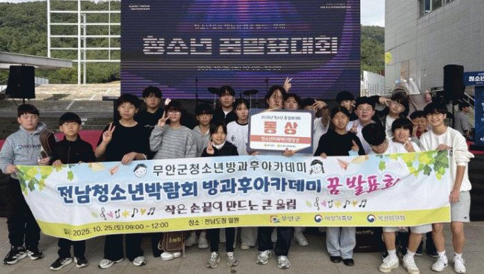 [ÅåÅå´º½º]Àü³² ¹«¾È±º û¼Ò³â¹æ°úÈľÆÄ«µ¥¹Ì û¼Ò³âµéÀÌ Áö³ 25ÀÏ Àü¶ó³²µµÃ» ÀÏ¿ø¿¡¼ ¿¸° '2025 Àü³²Ã»¼Ò³â¹Ú¶÷ȸ ¹æ°úÈľÆÄ«µ¥¹Ì ²Þ¹ßǥȸ'¿¡¼ û¼Ò³â¹Ì·¡Àç´Ü ¿øÀå»ó(µ¿»ó)À» ¼ö»óÇϸç Áö¿ªÀÇ ¸í¿¹¸¦ ³ô¿´´Ù.