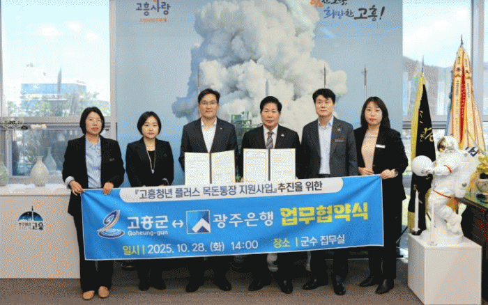 [ÅåÅå´º½º]°íÈﱺÀº 28ÀÏ ±º¼ö Áý¹«½Ç¿¡¼ ±¤ÁÖÀºÇà°ú ¡®°íÈïû³â Ç÷¯½º¸ñµ·ÅëÀå Áö¿ø»ç¾÷¡¯ ÃßÁøÀ» À§ÇÑ ¾÷¹«Çù¾àÀ» ü°áÇß´Ù°í ¹àÇû´Ù.