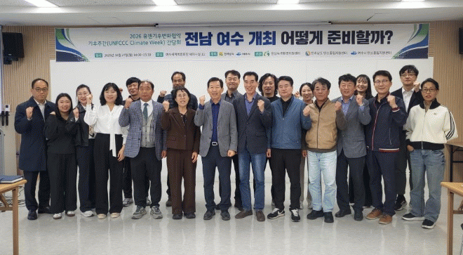 [ÅåÅå´º½º]¿©¼ö½Ã´Â Áö³ 27ÀÏ ¿©¼ö¼¼°è¹Ú¶÷ȸÀå¿¡¼ ¡®2026³â À¯¿£±âÈĺ¯ÈÇù¾à(UNFCCC) ±âÈÄÁÖ°£¡¯ ±¹³» Èĺ¸Áö ¼±Á¤¿¡ µû¸¥ À¯Ä¡ °£´ãȸ¸¦ °³ÃÖÇß´Ù.