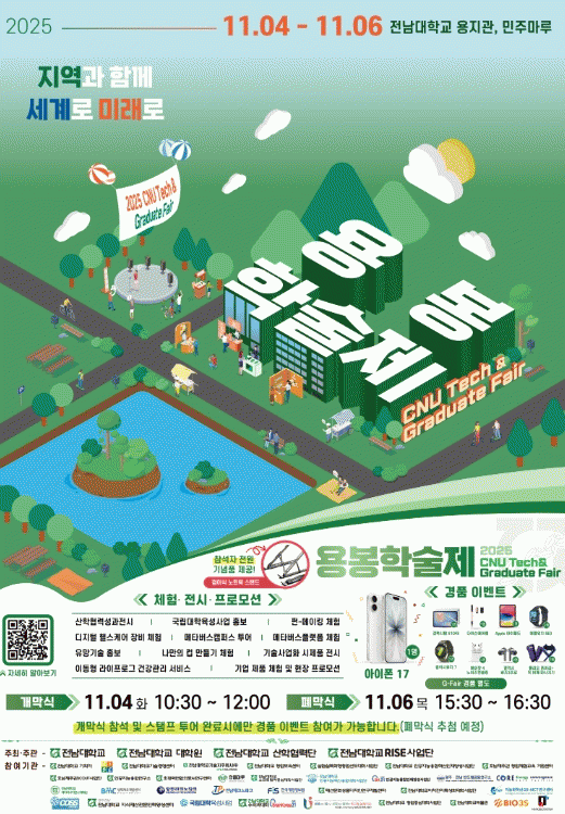30ÀÏ Àü³²´ë¿¡ µû¸£¸é, ¿À´Â 11¿ù 4ÀϺÎÅÍ 6ÀϱîÁö »çÈê°£ ´ëÇÐ ¿ëÁö°ü°ú ¹ÎÁÖ¸¶·ç ÀÏ¿ø¿¡¼¡®2025 Àü³²´ëÇб³ ¿ëºÀÇмúÁ¦(CNU Tech ¡¤ Graduate Fair)¡¯°¡ ¿¸°´Ù.