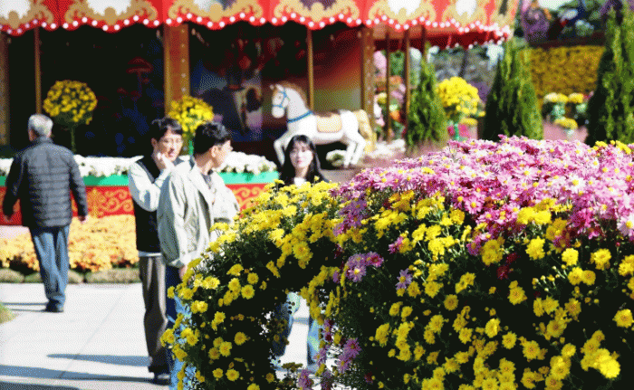 ±¹È²ÉÀÌ ¸¸°³ÇÑ Áß¾Ó±¤Àå¿¡´Â ¼ö¸¸ ¼ÛÀÌÀÇ È´Ü±¹°ú ºÐÀç±¹ÀÌ ¾î¿ì·¯Á® Àå°üÀ» ÀÌ·ç¸ç, °¡Á· ´ÜÀ§ ¹æ¹®°´°ú ¿¬ÀÎ, Ä£±¸µéÀÌ Ãß¾ïÀ» ³²±æ ¼ö ÀÖ´Â ¡®Àλý¼¦ ¸í¼Ò¡¯·Î Å« È£ÀÀÀ» ¾ò°í ÀÖ´Ù.