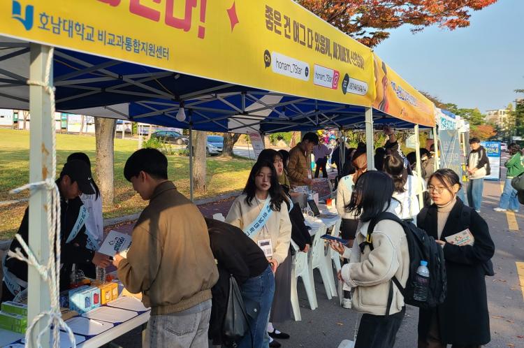 [ÅåÅå´º½º]È£³²´ëÇб³ ºñ±³°úÅëÇÕÁö¿ø¼¾ÅÍ(¼¾ÅÍÀå ÁÂÇö¼÷)´Â 10¿ù 29ÀϺÎÅÍ 10¿ù 31ÀϱîÁö »çÈê°£ È£´ë¸¶´ç ¾Õ¿¡¼ ºñ±³°ú ¹× Çаú¼Æ÷ÅÍÁîµéÀÌ ¡®2025-2Çб⠺ñ±³°úÇÁ·Î±×·¥ 7Star È«º¸ ºÎ½º¡¯¸¦ ¿î¿µÇß´Ù. À̹ø Çà»ç´Â ¡®³¶¸¸¿¬È¡¯ °¡À»ÃàÁ¦¿Í ¿¬°èÇØ 7Star ÀåÇÐ Á¦µµ¸¦ ³Î¸® ¾Ë¸®°í ÇлýµéÀÇ ºñ±³°ú ÇÁ·Î±×·¥ Âü¿©¸¦ Ȱ¼ºÈÇϱâ À§ÇØ ¸¶·ÃµÆ´Ù.