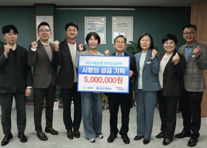 °»ó±¸ ³ªÁÖ ºÎ½ÃÀåÀº ¡°¾î·Á¿î ½Ã±â¿¡ Áö¿ª ¾Æµ¿µéÀ» À§ÇØ µû¶æÇÑ ¸¶À½À» ÀüÇØÁֽŠSGI¼¿ïº¸Áõ¿¡ ±íÀÌ °¨»çµå¸°´Ù¡±¸ç ¡°±âʹÞÀº ¼º±ÝÀº ½Ã¼³¿¡ ¼ÒÁßÈ÷ Àü´ÞÇØ ¾ÆÀ̵éÀÇ º¹Áö Çâ»ó¿¡ º¸ÅÆÀÌ µÇµµ·Ï Çϰڴ١±°í È´äÇß´Ù.