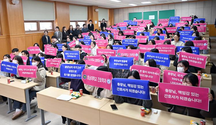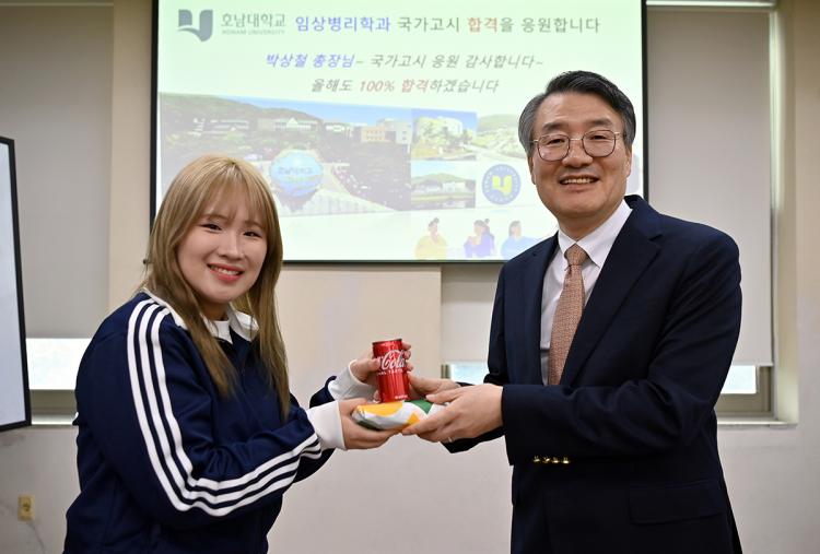 [ÅåÅå´º½º]¹Ú»óö È£³²´ëÇб³ ÃÑÀåÀº 11¿ù 5ÀÏ ¿ÀÀü º¸°Ç°úÇдëÇÐ(ÇÐÀå À¯Çý¼÷) ¼Ò¼Ó 8°³ Çаú¸¦ Â÷·Ê·Î ¹æ¹®, ¿Ã ¿¬¸»°ú ³»³â 1¿ù¿¡ ½Ç½ÃµÉ ¿¹Á¤µÈ ±¹°¡°í½Ã¸¦ ¾ÕµÎ°í ÀÖ´Â 4Çгâ ÀçÇлý 3¹é40¸í¿¡°Ô »÷µåÀ§Ä¡¿Í À½·á¼ö¸¦ Àü´ÞÇϰí ÀÀ¿øÇß´Ù.