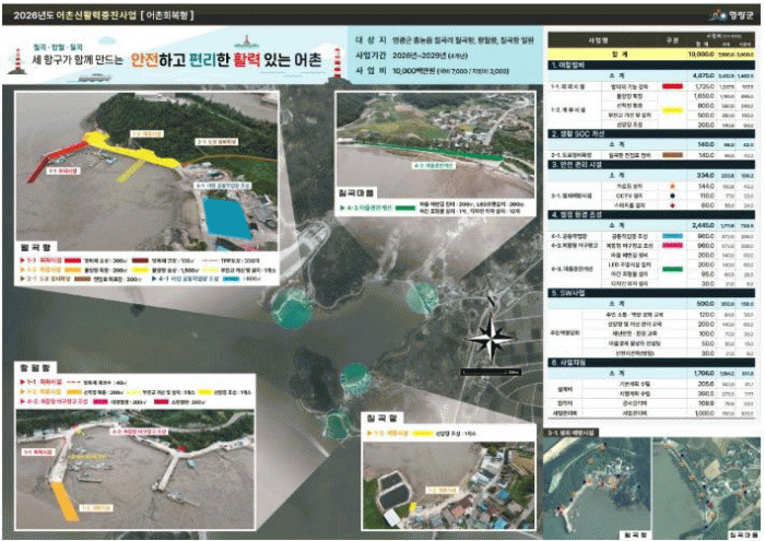 ÁÖ¿ä »ç¾÷³»¿ëÀº ¹æÆÄÁ¦ ¹× ¹°¾çÀå È®º¸, ºÎÀܱ³ ¼³Ä¡, ¾î±¸Ã¢°í ½Å¼³ µî ¾îÃÌÀÇ »ýȰ ÀÎÇÁ¶ó È®Ãæ°ú ¾ÈÀü¼º °È¸¦ À§ÇÑ »ç¾÷ÀÌ ÃßÁøµÉ ¿¹Á¤ÀÌ´Ù.