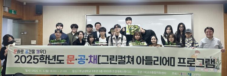 À̹ø ÇÁ·Î±×·¥Àº È£³²´ëÇб³ 6´ë Çٽɿª·® Áß ÇϳªÀÎ ¡®¹®ÈÀû ¼Ò¾ç¡¯À» ÇÔ¾çÇϱâ À§ÇØ ±âȹµÈ ¡®¹®‧°ø‧ä(¹®È·Î °ø°£À» ä¿ì´Ù)¡¯ ÇÁ·Î±×·¥ÀÇ ÀÏȯÀ¸·Î, Àΰ£¡¤ÀÚ¿¬¡¤°ø°£ÀÇ Á¶È¸¦ ޱ¸ÇÏ´Â ¹®È ÀÌÇØ ±³À°°ú Á¤¿ø °ø°£ ±âȹ ¹× ¼³°è ½Ç½ÀÀ» °áÇÕÇÑ Ã¼ÇèÇü Ȱµ¿ÀÌ´Ù.