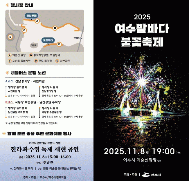 ÇÑÆí ¿ÃÇØ 10ÁÖ³âÀ» ¸Â´Â ¡®2025 ¿©¼ö¹ã¹Ù´Ù ºÒ²ÉÃàÁ¦¡¯´Â 11¿ù 8ÀÏ À̼ø½Å±¤Àå°ú À屺µµ ¾Õ ÇØ»ó ÀÏ¿ø¿¡¼ ÁøÇàµÈ´Ù.