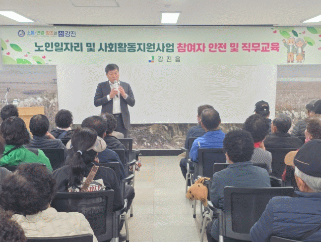 [ÅåÅå´º½º]°Áø±º °ÁøÀ¾ÀÌ Áö³ 5ÀÏ °ÁøÀ¾»ç¹«¼Ò ´ëȸÀǽǿ¡¼ ³ëÀÎÀÏÀÚ¸®»ç¾÷ Âü¿© ¾î¸£½Å 261¸íÀ» ´ë»óÀ¸·Î ³ëÀÎÀÏÀÚ¸®»ç¾÷ ¾ÈÀü±³À°À» ½Ç½ÃÇß´Ù.