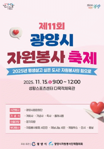 [ÅåÅå´º½º]±¤¾ç½Ã´Â ¿À´Â 11¿ù 15ÀÏ ¼ºÈ²½ºÆ÷Ã÷¼¾ÅÍ ´Ù¸ñÀûüÀ°°ü¿¡¼ ±¤¾ç½ÃÀÚ¿øºÀ»ç´ÜüÇùÀÇȸ ÁÖ°üÀ¸·Î ¡®Á¦11ȸ ±¤¾ç½Ã ÀÚ¿øºÀ»ç ÃàÁ¦¡¯¸¦ °³ÃÖÇÑ´Ù°í ¹àÇû´Ù.