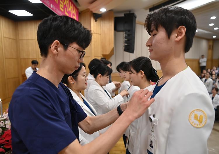 ¼±¼½Ä¿¡ Âü¿©ÇÑ Çлý ´ëÇ¥ È«³ª¿µ ÇлýÀº ¡°³ªÀÌÆÃ°ÔÀÏ ¼±¼½ÄÀ» ÅëÇØ °£È£»ç·Î¼ÀÇ »ç¸í°¨°ú µû¶æÇÑ ¸¶À½À» ´Ù½Ã±Ý µÇ»õ±æ ¼ö ÀÖ¾ú´Ù. ¿À´ÃÀÇ ´ÙÁüÀ» ÀØÁö ¾Ê°í, ȯÀÚ¿¡°Ô Áø½ÉÀ¸·Î ´Ù°¡°¡´Â °£È£»ç°¡ µÇ°Ú´Ù¡±´Â °¢¿À¸¦ ´ÙÁ³´Ù.