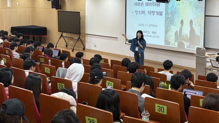¹é¶õ±³¼ö´Â ¡°AI´Â Àΰ£ÀÇ ÀÏÀ» ´ëüÇÏ´Â ±â¼úÀÌ ¾Æ´Ñ, Àΰ£ÀÇ Ã¢ÀÇ·ÂÀ» È®Àå½ÃŰ´Â µµ±¸¡±¶ó°í ¸»¹®À» ¿¬ µÚ, ÃÖ±Ù ±Þ¼ÓÈ÷ ¹ßÀüÇϰí ÀÖ´Â GPT-5, Sora, Gemini µî ÃֽŠ»ý¼ºÇü AIÀÇ ±â¼úÀû Ư¡°ú ½ÇÁ¦ ÀÀ¿ë »ç·Ê¸¦ ¼Ò°³ÇÏ¸ç ¡°AI´Â ´õ ÀÌ»ó ´Ü¼øÇÑ ´ëÈÇü ½Ã½ºÅÛÀÌ ¾Æ´Ñ, Àΰ£ÀÇ »ó»ó·ÂÀ» ½Ã°¢ÈÇÏ°í ¾ÆÀ̵ð¾î¸¦ ±¸Ã¼ÈÇϴ âÀÇÀû Çù¾÷ ÆÄÆ®³Ê·Î ÀÚ¸® Àâ°í ÀÖ´Ù¡±°í °Á¶Çß´Ù.