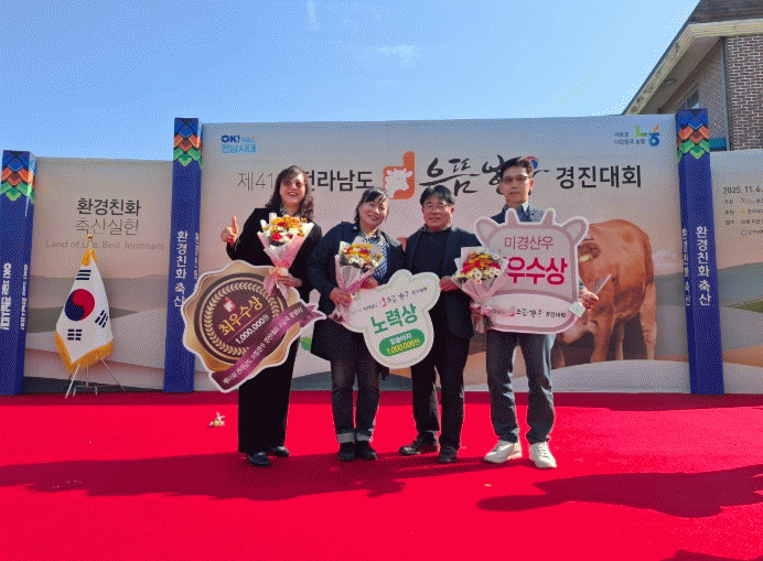 [ÅåÅå´º½º] °î¼º±ºÀº Áö³ 6ÀÏ ¼øÃµ±¤¾çÃàÇù¿¡¼ ¿¸°¡®2025³â Á¦41ȸ Àü¶ó³²µµ À¸¶äÇÑ¿ì °æÁø´ëȸ¡¯¿¡¼ °í±ÞÀ° ºÎ¹® ¿Á°ú¸é ÃÖÇϳª ³ó°¡°¡¡°ÃÖ¿ì¼ö»ó¡±, ¿ì·®ÇÑ¿ì(¹Ì°æ»ê¿ì) ºÎ¹® ¸ñ»çµ¿¸é Á¶½ÅÀÍ ³ó°¡°¡ ¡°ÃÖ¿ì¼ö»ó¡±, ¿ì·®ÇÑ¿ì(¾Ï¼Û¾ÆÁö) ºÎ¹® °â¸é À̱ݼ÷ ³ó°¡°¡ ¡°³ë·Â»ó¡±À» ¹Þ´Â Äè°Å¸¦ ÀÌ·ð´Ù°í 10ÀÏ ¹àÇû´Ù.