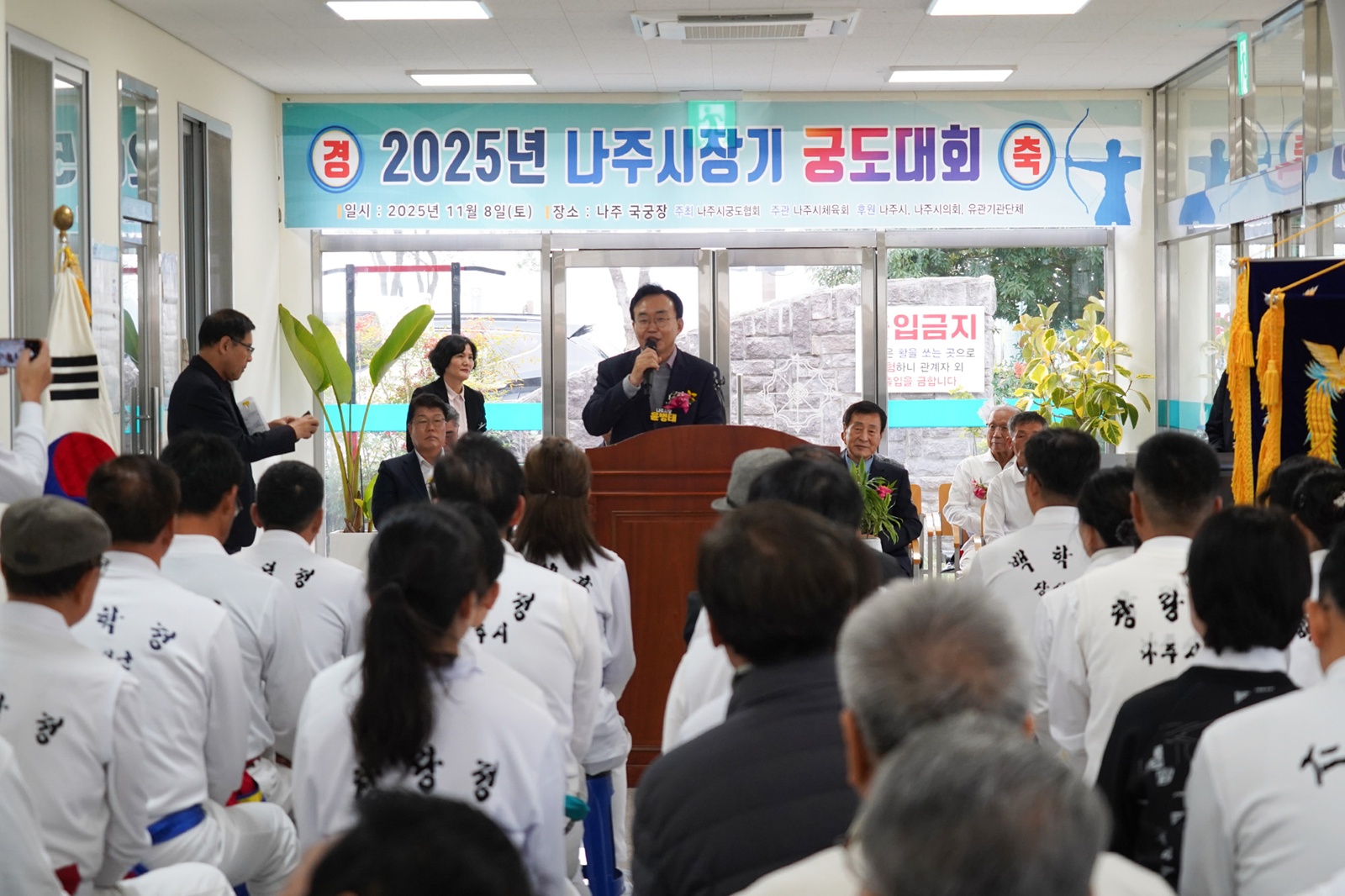 Áö³ 8ÀÏ ³ªÁÖÁ¾ÇÕ½ºÆ÷Ã÷ÆÄÅ© ³» ±¹±¹Àå¿¡¼ ¡®2025³â ³ªÁÖ½ÃÀå±â ±Ãµµ´ëȸ¡¯°¡ ¿·Á Áö¿ª ±Ãµµ µ¿È£ÀÎ 100¿© ¸íÀÌ Âü°¡ÇßÀ¸¸ç °³ÀÎÀü°ú ´ÜüÀüÀ» ÅëÇØ ±â·®À» °Ü·ð´Ù.