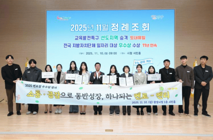 [ÅåÅå´º½º]±¤¾ç½Ã´Â ½Å±ÔÁ÷¿øÀÇ Á¶Á÷ ÀûÀÀ°ú °øÁ÷°ü Çü¼ºÀ» À§ÇØ ÃßÁøÇÑ 2025³â ¸àÅ丵 Ȱµ¿À» Æò°¡Çϰí, 11¿ù Á¤·ÊÁ¶È¸¿¡¼ ÃÖ¿ì¼ö¡¤¿ì¼ö¡¤Àå·Á 6°³ ÆÀÀ» ¼±Á¤ÇØ ½Ã»óÇß´Ù°í ¹àÇû´Ù.