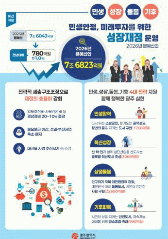 ±¤ÁÖ±¤¿ª½Ã, 2026³â ¿¹»ê¾È 7Á¶6823¾ï Æí¼º ¹Î»ý¾ÈÁ¤¡¤¹Ì·¡ÅõÀÚ À§ÇÑ ¡®¼ºÀåÀçÁ¤¡¯ ¿î¿µ