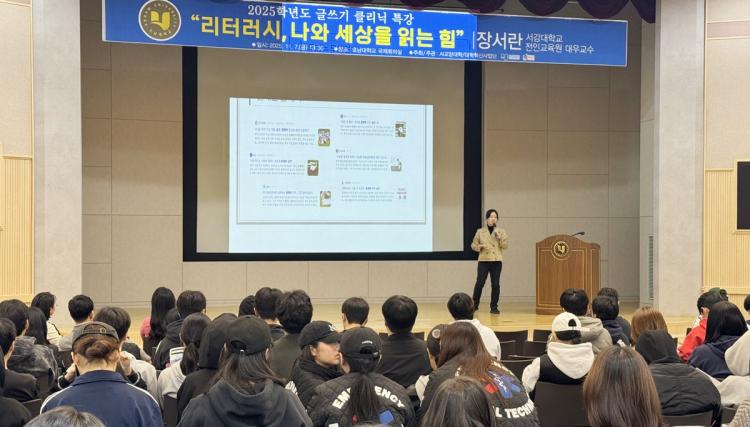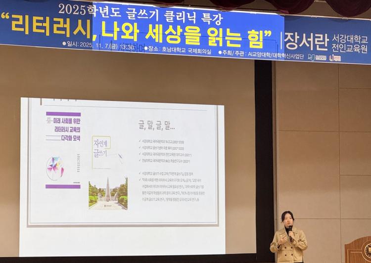 [ÅåÅå´º½º]È£³²´ëÇб³ AI±³¾ç´ëÇÐ(ÇÐÀå ¼Ûâ¼ö)Àº 11¿ù 7ÀÏ ±¹Á¦È¸Àǽǿ¡¼ ÀçÇлýµéÀ» ´ë»óÀ¸·Î ¡®¸®ÅÍ·¯½Ã, ³ª¿Í ¼¼»óÀ» Àд Èû¡¯À» ÁÖÁ¦·Î ±Û¾²±â Ư°À» ÁøÇàÇß´Ù.