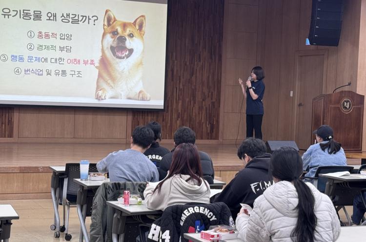 [ÅåÅå´º½º]È£³²´ëÇб³ ºñ±³°úÅëÇÕÁö¿ø¼¾ÅÍ(¼¾ÅÍÀå ÁÂÇö¼÷)´Â 11¿ù 13ÀÏ ÀçÇлýµéÀÇ Á¤¼Àû ¾ÈÁ¤°ú »ý¸íÁ¸Áß ¹®È È®»êÀ» À§ÇÑ ¡®ÆêÇϸð´Ï(Pet Harmony)¡¯ ÇÁ·Î±×·¥ À¯±âµ¿¹° ºÀ»ç¸¦ À§ÇÑ ÈÆ·Ã ¹× Çൿ ±âÃÊ 2Â÷ °ÀǸ¦ ÁøÇàÇß´Ù.
