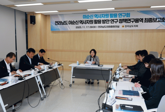 [ÅåÅå´º½º]Àü¶ó³²µµÀÇȸ À̼ø½Å ¿ª»çÀÚ¿ø Ȱ¿ë ¿¬±¸È¸(´ëÇ¥ÀÇ¿ø ±èȽÅ)´Â 17ÀÏ µµÀÇȸ ÁßȸÀǽǿ¡¼ 'Àü¶ó³²µµ À̼ø½Å ¿ª»çÀÚ¿ø Ȱ¿ë ¹æ¾È ¿¬±¸'ÃÖÁ¾º¸°íȸ¸¦ °³ÃÖÇß´Ù.