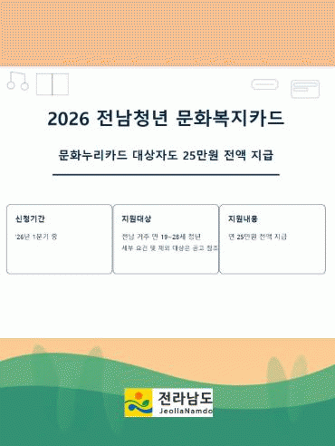 [ÅåÅå´º½º]Àü¶ó³²µµ´Â 2026³âºÎÅÍ Àü³² û³â ¹®Èº¹ÁöÄ«µå »ç¾÷ ÃßÁø ½Ã °æÁ¦Àû Ãë¾à °èÃþ(±âÃÊ»ýȰ¼ö±ÞÀÚ¡¤Â÷»óÀ§°èÃþ)ÀÌ ¼öÇý¸¦ ¹Þ´Â ¹®È´©¸®Ä«µå Áö±ÞÀÚ¿¡°Ôµµ 25¸¸ ¿ø Àü¾×À» Áö±ÞÇÑ´Ù°í ¹àÇû´Ù.