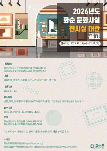 [ÅåÅå´º½º]ȼø±ºÀº Áö¿ª ¹®È¿¹¼ú ¹ßÀü ÃËÁøÀ» À§ÇØ ¿ª·® ÀÖ´Â °³ÀÎ ¶Ç´Â ´Üü¿¡ Àü½Ã °ø°£À» Á¦°øÇÏ´Â ¡®2026³âµµ ȼø ¹®È½Ã¼³ Àü½Ã½Ç ´ë°üÀ» ½Åû¡¤Á¢¼öÇÑ´Ù°í 19ÀÏ ¹àÇû´Ù.