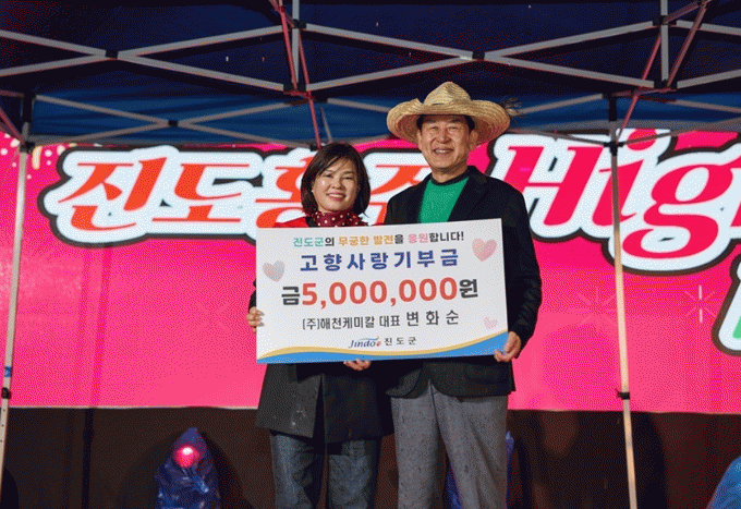 [ÅåÅå´º½º]¢ßÇØÃµÄɹÌÄ® º¯È¼ø ´ëÇ¥°¡ ÃÖ±Ù, Áøµµ±ºÀ» ¹æ¹®ÇØ °íÇâ»ç¶û±âºÎ±Ý 500¸¸ ¿øÀ» Áøµµ±º¿¡ ±âºÎÇß´Ù.