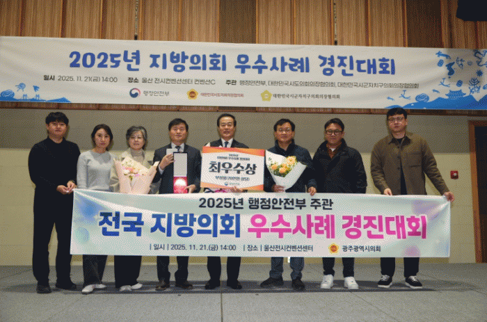 [ÅåÅå´º½º] ±¤ÁÖ±¤¿ª½ÃÀÇȸ È«±â¿ù ÀÇ¿ø(±¤ÁÖ µ¿±¸1, ´õºÒ¾î¹ÎÁÖ´ç)ÀÌ 21ÀÏ ¿ï»êÀü½ÃÄÁº¥¼Ç¼¾ÅÍ¿¡¼ ¿¸° ¡®2025 Áö¹æÀÇȸ ¿ì¼ö»ç·Ê °æÁø´ëȸ¡¯¿¡¼ ¡®ÃÖ¿ì¼ö»ó¡¯À» ¼ö»óÇß´Ù.