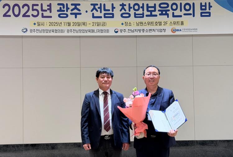 [ÅåÅå´º½º]È£³²´ëÇб³ â¾÷º¸À°¼¾ÅÍ ¹®¿µ½Å ½ÇÀåÀÌ 11¿ù 21ÀÏ ³²¿ø ½ºÀ§Æ®È£ÅÚ¿¡¼ °³ÃÖµÈ ¡®2025³â ±¤ÁÖ¡¤Àü³² â¾÷º¸À°ÀÎÀÇ ¹ã¡¯ Çà»ç¿¡¼ â¾÷º¸À° ºÎ¹® ¿ì¼ö À¯°øÀÚ·Î ¼±Á¤µÅ Çѱ¹Ã¢¾÷º¸À°ÇùȸÀå»óÀ» ¼ö»óÇß´Ù.