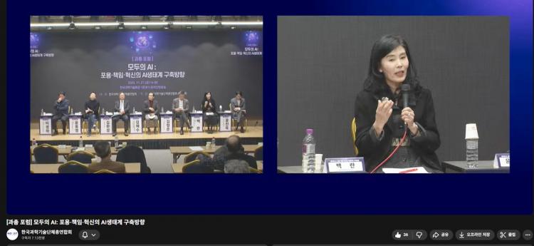[ÅåÅå´º½º]È£³²´ëÇб³ ÄÄÇ»ÅͰøÇаú ¹é¶õ ±³¼ö´Â 11¿ù 21ÀÏ Çѱ¹°úÇбâ¼ú´ÜüÃÑ¿¬ÇÕȸ(°úÃÑ)°¡ ÁÖÃÖÇÑ ¡®¸ðµÎÀÇ AI: Æ÷¿ë¡¤Ã¥ÀÓ¡¤Çõ½ÅÀÇ AI »ýÅÂ°è ±¸Ãà ¹æÇ⡯ Æ÷·³¿¡ ÆÐ³Î·Î Âü¼®, ±³À° ÇöÀåÀÇ ½ÇÁ¦ °æÇè°ú Á¤Ã¥Àû ´ë¾ÈÀ» Áß½ÉÀ¸·Î ½Éµµ ±íÀº ³íÀǸ¦ À̲ø¾ú´Ù. ¹é ±³¼ö´Â AI ±³À°ÀÇ ¹æÇâÀ» ¡°´Ü¼øÇÑ ±â´É ½ÀµæÀ» ³Ñ¾î, ÇöÀå Áß½ÉÀÇ ¹®Á¦ ÇØ°á·Î ³ª¾Æ°¡¾ß ÇÑ´Ù¡±°í °Á¶Çß´Ù.