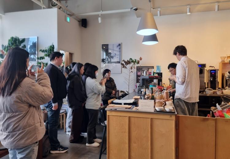 ÇлýµéÀº ¸ñÆ÷½Ã¿¡ À§Ä¡ÇÑ ÄݶóÀ̵å Ä¿ÇÇ ·Î½ºÅͽº ¸ÅÀåÀ» ¹æ¹®ÇØ ¹Ù¸®½ºÅ¸ ½Ç½ÀÀ» ÁøÇàÇß´Ù. ÀÌÀ缺 ´ëÇ¥¿Í ¸ÅÀå Á÷¿øµéÀº µå¸³ Ä¿ÇÇ ÃßÃâ, ¶ó¶¼ ¾ÆÆ®, ¿¡½ºÇÁ·¹¼Ò ¸Ó½Å »ç¿ë¹ý, ¿øµÎ ±×¶óÀεù°ú ÃßÃâ º¯¼ö Á¶Àý, ¸ÅÀå ¿î¿µ ³ëÇÏ¿ì µîÀ» ´Ü°èº°·Î ¾È³»ÇØ ½Ç¹« ÀÌÇØµµ¸¦ ³ô¿´´Ù.