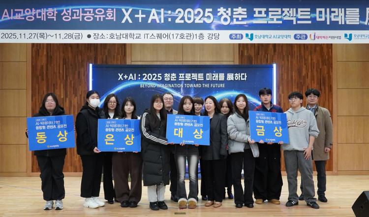 [ÅåÅå´º½º]¡®AI Ư¼ºÈ´ëÇС¯ È£³²´ëÇб³(ÃÑÀå ¹Ú»óö)°¡ 2020³âºÎÅÍ Àü±³»ý¿¡°Ô AI±³¾ç±³À°À» ½Ç½ÃÇÑ Áö ¿ÃÇØ·Î 5ÁÖ³âÀ» ¸ÂÀº °¡¿îµ¥ ±×µ¿¾È ÁøÇàÇØ¿Â ±³°ú¸ñ ¼º°ú¹°À» ÇÑÀÚ¸®¿¡ Àü½ÃÇÏ´Â ÇÑÆí ¡®AI Á߽ɵµ½Ã ±¤ÁÖ¡¯ÀÇ ¹Ì·¡¼ºÀå °ßÀÎÀ» ´ÙÁüÇÏ´Â ¡®X+AI : 2025 ûÃá ÇÁ·ÎÁ§Æ®–¹Ì·¡¸¦ î÷ÇÏ´Ù¡¯ Çà»ç°¡ ¼ºÈ²¸®¿¡ ¿·È´Ù.