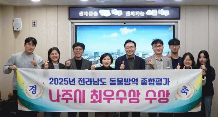 [ÅåÅå´º½º]Àü¶ó³²µµ ³ªÁֽð¡ Àü±¹ ÃÖ´ë ¿À¸®»çÀ° Áö¿ªÀ̶ó´Â ³ôÀº ¹æ¿ª ºÎ´ã ¼Ó¿¡¼µµ Àü¶ó³²µµ°¡ ½Ç½ÃÇÑ ¡®2025³âµµ µ¿¹°¹æ¿ªÀ§»ý ½ÃÃ¥ ÃßÁøÁ¾ÇÕÆò°¡¡¯¿¡¼ ÃÖ¿ì¼ö»óÀ» ¹Þ¾Ò´Ù.