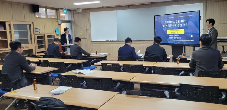 À̹ø ¹ßǥȸ¿¡´Â ¹Ú»ç°úÁ¤ ±è¼±ÁØ, Àü¿µ³² ÇлýÀÌ °¢°¢ ¡®Æ÷ÈÆ¯¼º½ÃÇèÀ» ÅëÇÑ CTÀÇ ÀûÁ¤¼º¿¡ °üÇÑ ¿¬±¸¡¯. ¡®¿¹Ãø Á¦¾î ±â¹Ý »ê¾÷¿ë ¸¶ÀÌÅ©·Î±×¸®µå ÃÖÀû ¿î¿µ ¿¬±¸¡¯ µî ´Ù¾çÇÑ ÁÖÁ¦ÀÇ ³í¹®À» ¹ßÇ¥ÇßÀ¸¸ç, ½É»ç ±³¼öÁø°úÀÇ ÁúÀÇÀÀ´äÀ» ÅëÇØ ¿¬±¸ ³»¿ëÀÇ Å¸´ç¼º°ú ½Ç¹« Àû¿ë °¡´É¼ºÀ» °ËÅäÇÏ´Â ½Ã°£À» °¡Á³´Ù. Æò°¡À§¿øÀ¸·ÎºÎÅÍ Àü¹®ÀûÀ̸鼵µ ±¸Ã¼ÀûÀÎ Æò°¡¿Í °³¼± ¹æÇâ¿¡ ´ëÇÑ Çǵå¹éÀ» ¹Þ¾Ò´Ù.