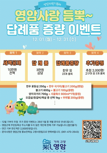 [ÅåÅå´º½º]¿µ¾Ï±ºÀÌ ÀÌ´Þ¿¡ À̾î 12¿ù¿¡µµ ¡®°íÇâ»ç¶ûeÀ½¡¯°ú ¹Î°£ Ç÷§Æû ¡®À§±âºê¡¯ ¡®À£·Î¡¯¿¡¼ °íÇâ»ç¶û±âºÎÀÚ °¨»ç À̺¥Æ®¸¦ È®´ëÇÑ´Ù.