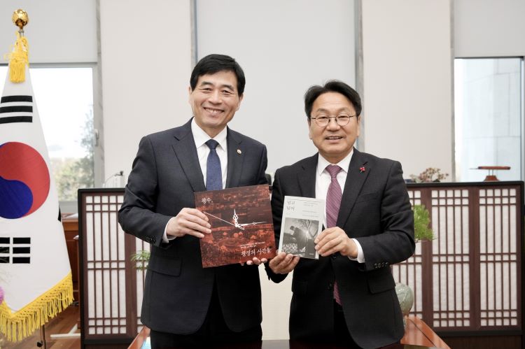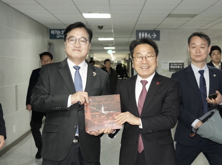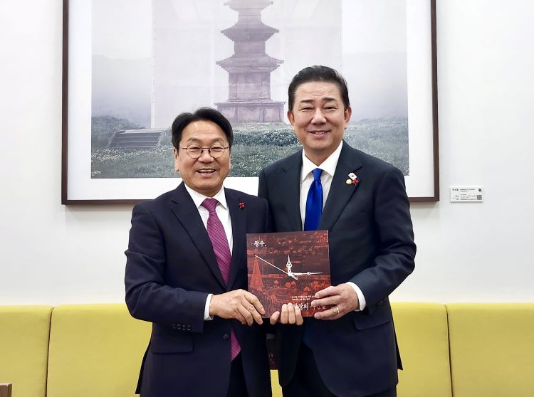 [ÅåÅå´º½º] °±âÁ¤ ±¤ÁÖ±¤¿ª½ÃÀåÀÌ 2ÀÏ ±¹È¸ ÀÇ¿øÈ¸°ü¿¡¼ ¿ì¿ø½Ä ±¹È¸ÀÇÀå°ú Á¤Ã»·¡ ´õºÒ¾î¹ÎÁÖ´ç ´ëÇ¥, ±èº´±â ¿ø³»´ëÇ¥, ±è¹Î±â ±¹È¸ »ç¹«ÃÑÀå¿¡°Ô À±¼®¿ ºñ»ó°è¾ö ¼±Æ÷ ÀÌÈÄ ½Ã¹Î»çȸ¿Í ±¤ÁÖ½ÃÀÇ °øµ¿ ´ëÀÀ ÀÏÁöÀÎ '±¤ÁÖ, ±¤ÀåÀÇ ½Ã°£µé'À» Àü´ÞÇϰí ÀÖ´Ù./±¤ÁÖ±¤¿ª½Ã Á¦°ø