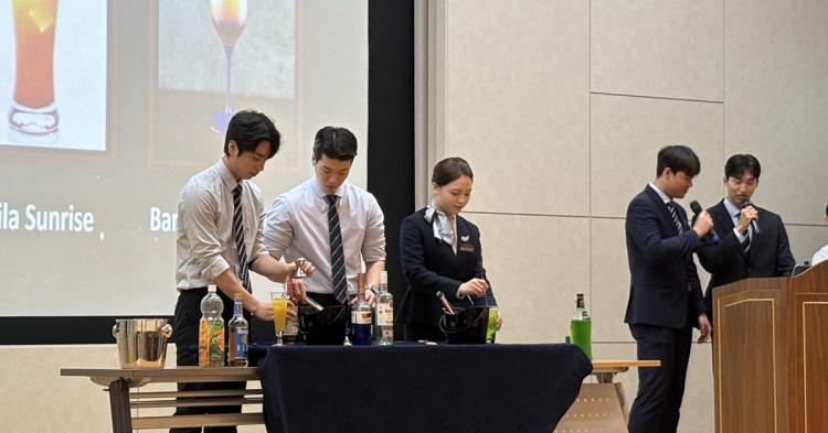 3ºÎ¿¡¼´Â ½Ç¹« Áß½ÉÀÇ Ã¼ÇèÇü ÇÁ·Î±×·¥ÀÌ ÁøÇàµÆ´Ù. Áø°æ¹Ì ±³¼öÀÇ Áöµµ·Î ÇлýµéÀÌ Á÷Á¢ ½Ã¿¬ÇÑ ½ÄÀ½·á ½Ç¹« ¡®Rainbow Cocktail¡¯Àº È·ÁÇÑ º¼°Å¸®¸¦ Á¦°øÇßÀ¸¸ç, ¸¶Áö¸· ¼ø¼·Î ÁøÇàµÈ ¡®³¯¾Æ¶ó µµÀü! GOLDEN BELL¡¯¿¡¼´Â Àü ÀçÇлýÀÌ Âü¿©ÇØ Ç×°ø Àü¹® Áö½ÄÀ» °Ü·ç¸ç Çб¸¿À» ºÒÅ¿ü´Ù. ƯÈ÷ ÇÁ·Î±×·¥ Áß°£¸¶´Ù ÀçÇлýµéÀÌ ÁغñÇÑ ´í½º ÃàÇϰø¿¬ÀÌ ´õÇØÁ® ÃàÁ¦ÀÇ ¿±â¸¦ ´õÇß´Ù.