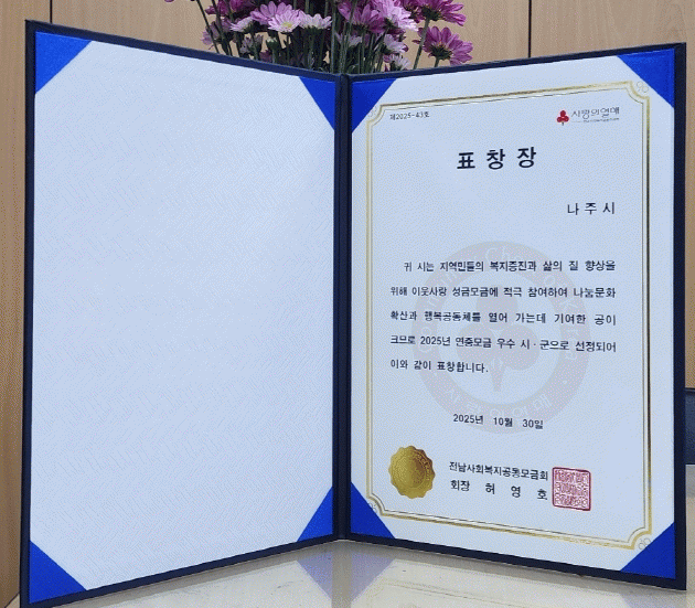 ³ªÁֽô ¡®Èñ¸Á2025³ª´®Ä·ÆäÀΡ¯À» Æ÷ÇÔÇÑ ¿¬Áß ¸ð±Ý ½ÇÀû¿¡¼ ³ôÀº Æò°¡¸¦ ¹Þ¾Æ 2025³â ¿¬Áß ¸ð±Ý ¿ì¼ö ½Ã·Î ¼±Á¤µÆ´Ù°í 3ÀÏ ¹àÇû´Ù.