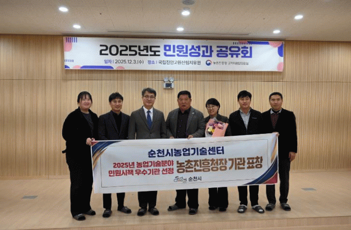 [ÅåÅå´º½º]¼øÃµ½Ã´Â Áö³ 3ÀÏ ±¹¸³Áø¾È°í¿ø»ê¸²Ä¡À¯¿ø¿¡¼ ¿¸° ³óÃÌÁøÈïû ÁÖ°ü ¡®2025³â ¹Î¿ø¼º°ú °øÀ¯È¸¡¯¿¡¼ '2025³â ³ó¾÷±â¼ú ºÐ¾ß ¹Î¿ø½ÃÃ¥ ¿ì¼ö±â°ü'¿¡ ¼±Á¤µÇ´Â ¿µ¿¹¸¦ ¾È¾Ò´Ù°í ¹àÇû´Ù.