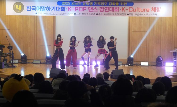 À̾îÁø K-ÆË´í½º °æ¿¬´ëȸ¿¡¼´Â º£Æ®³², Áß±¹, ¿ìÁŰ½ºÅº µî ´Ù¾çÇÑ ±¹ÀûÀÇ À¯ÇлýµéÀÌ Âü¿©ÇØ, ¼·Î ´Ù¸¥ ¹®ÈÀû ¹è°æÀ» °¡Áø ÇлýµéÀÌ ÇϳªÀÇ ¾È¹«·Î È£ÈíÀ» ¸ÂÃß´Â ´Ù¹®È ±³·ùÀÇ ÀåÀÌ µÇ¾ú´Ù. °ü¶÷¼®¿¡ ÀÚ¸®ÇÑ À¯ÇлýµéÀº ÈÞ´ëÀüÈ·Î °ø¿¬ Àå¸éÀ» ÃÔ¿µÇϸç ÀÀ¿ø ±¸È£¸¦ ÇÔ²² ¿ÜÄ¡´Â µî À¯ÇлýµéÀÌ ÇÑ ´Ü°è ´õ °¡±î¿öÁö´Â ÇöÀå ºÐÀ§±â¸¦ ¿¬ÃâÇß´Ù.