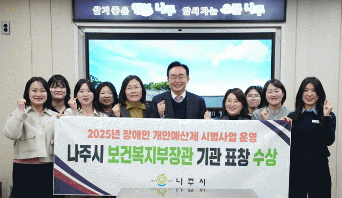 ³ªÁֽô ¡®2025³â Àå¾ÖÀÎ °³Àο¹»êÁ¦ ½Ã¹ü»ç¾÷¡¯¿¡ Âü¿©ÇØ ¿ì¼öÇÑ ½ÇÇà ¼º°ú¸¦ ÀÎÁ¤¹Þ¾Æ º¸°Çº¹ÁöºÎÀå°ü ±â°ü ǥâÀ» ¹Þ¾Ò´Ù.