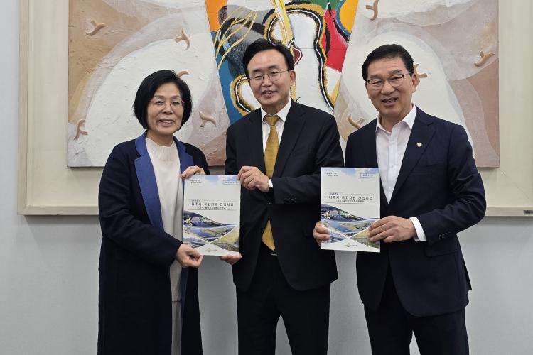 | À±º´Å ³ªÁÖ½ÃÀå(°¡¿îµ¥)°ú ½ÅÁ¤ÈÆ ±¹È¸ÀÇ¿ø(¿À¸¥ÂÊ)ÀÌ ÃÖ¹ÎÈñ ±¹È¸ °úÇбâ¼úÁ¤º¸¹æ¼ÛÅë½ÅÀ§¿øÀå¿¡°Ô ±¹°íÁö¿ø °ÇÀÇ»ç¾÷¿¡ ´ëÇÑ Áö¿øÀ» ¿äûÇß´Ù.(»çÁø Á¦°ø-³ªÁÖ½Ã) |