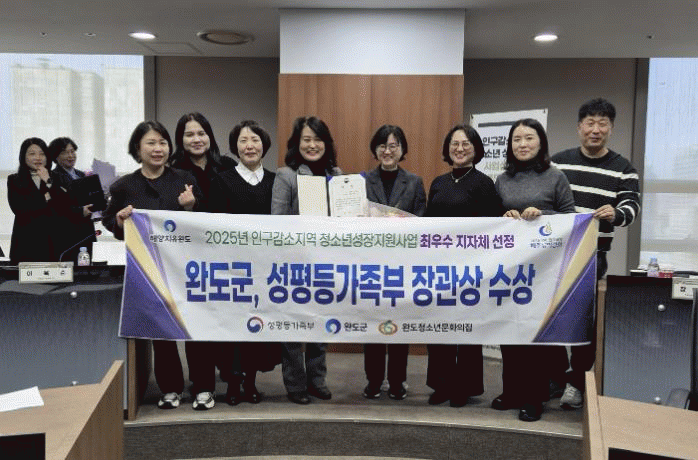 [ÅåÅå´º½º]¿Ïµµ±ºÀÌ '2025³â Àα¸ °¨¼Ò Áö¿ª û¼Ò³â ¼ºÀå Áö¿ø »ç¾÷' ½ÃÇà Ã¹ÇØ ÃÖ¿ì¼ö ÁöÀÚü·Î ¼±Á¤µÇ¾î ¼ºÆòµî°¡Á·ºÎ Àå°ü»óÀ» ¼ö»óÇß´Ù.
