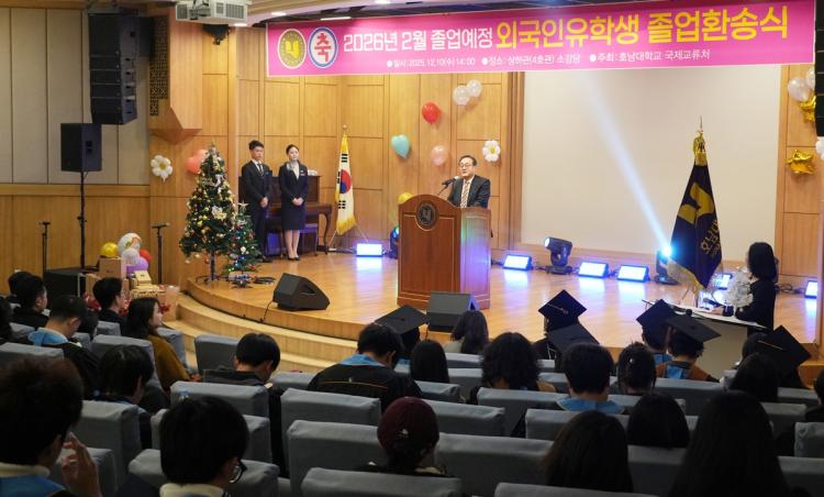 [ÅåÅå´º½º]È£³²´ëÇб³ ±¹Á¦±³·ùó(óÀå ¼Õ¿ÏÀÌ)´Â 12¿ù 10ÀÏ 4È£°ü ¼Ò°´ç¿¡¼ 2026³â 2¿ù Á¹¾÷¿¹Á¤ ¿Ü±¹ÀÎ À¯Çлý ȯ¼Û½ÄÀ» °³ÃÖÇϰí, °ð Á¹¾÷À» ¾ÕµÐ ¿Ü±¹ÀÎ À¯ÇлýµéÀÇ »õ·Î¿î Ãâ¹ßÀ» ÃàÇÏÇß´Ù.