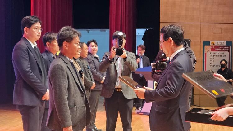 | '2025 ÀÚ¿øºÀ»çÀÚ ´ëȸ' ÀÚ¿øºÀ»ç ¿ì¼ö±â°ü ÇöÆÇ ¼ö¿© »çÁø, Àü¶ó³²µµÁö»ç ±è¿µ·Ï(¿ìÃø) ¿À¸íÈ£ ÇлýÃë¾÷óÀå(ÁÂÃø) |
